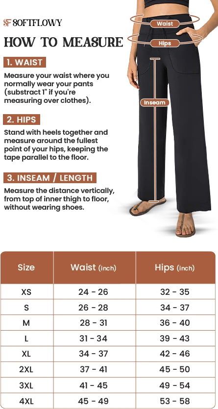 Our size chart is meticulously crafted to match your measurements, ensuring each pair of pants fits just right. See the guide below for how to measure.